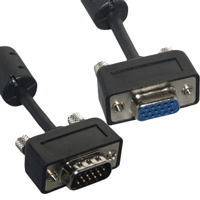 The 6Ft Slim SVGA Monitor Cable Extension is a smaller diameter than normal SVGA cable, the Slim SVGA Cable has a smaller hood and ferrite's to fit where other SVGA cables don't. With our Slim SVGA you can move your monitor up to 50Ft away from your pc without any worries (in most applications). All of our Slim SVGA cables have dual ferrite's and are triple shielded to keep your devices operating at peak performance. The dual ferrite's and triple shielding of our Slim SVGA cables ensure that double imaging, ghosting, signal loss and signal distortion will be non-issues. Our Slim SVGA cables deliver the best picture possible in the home, office, server room and in classrooms for video presentations.